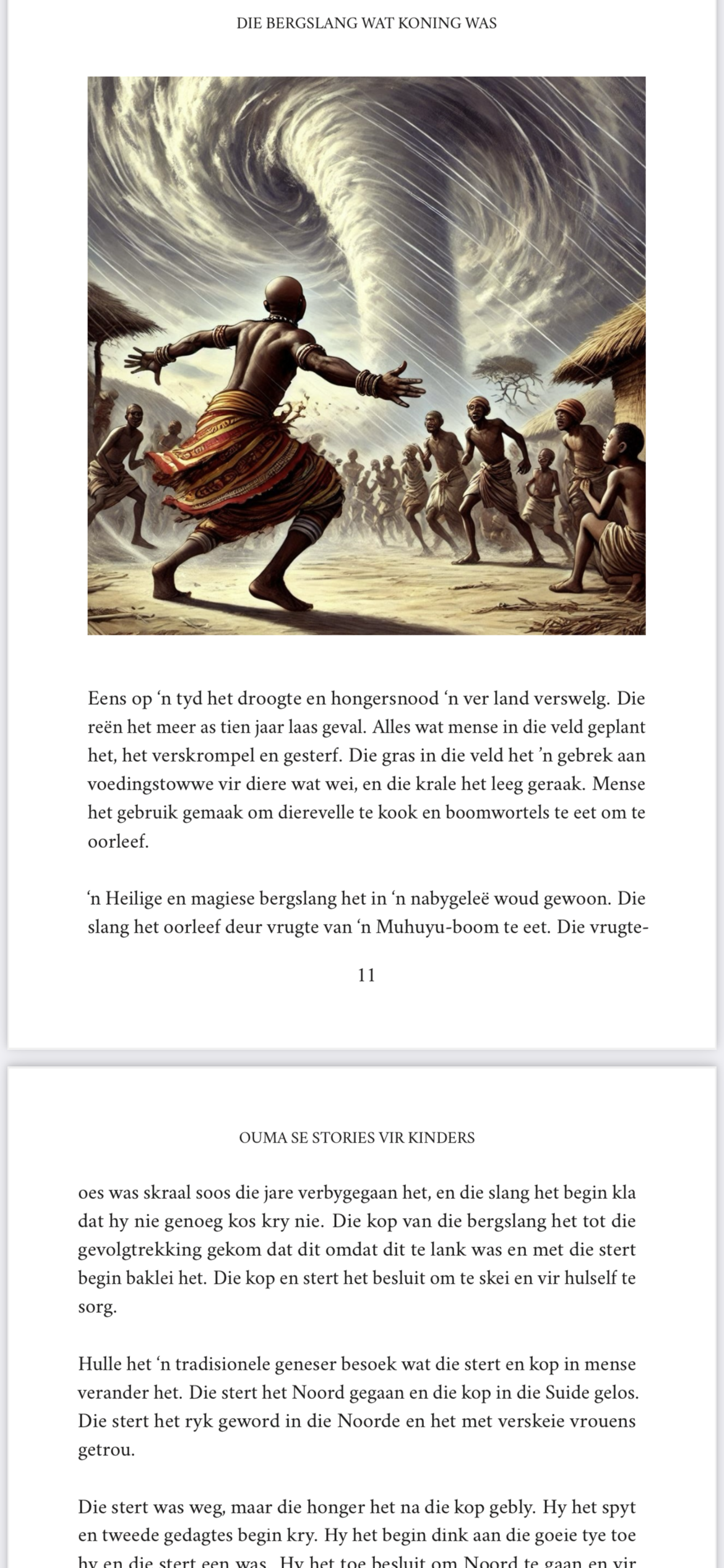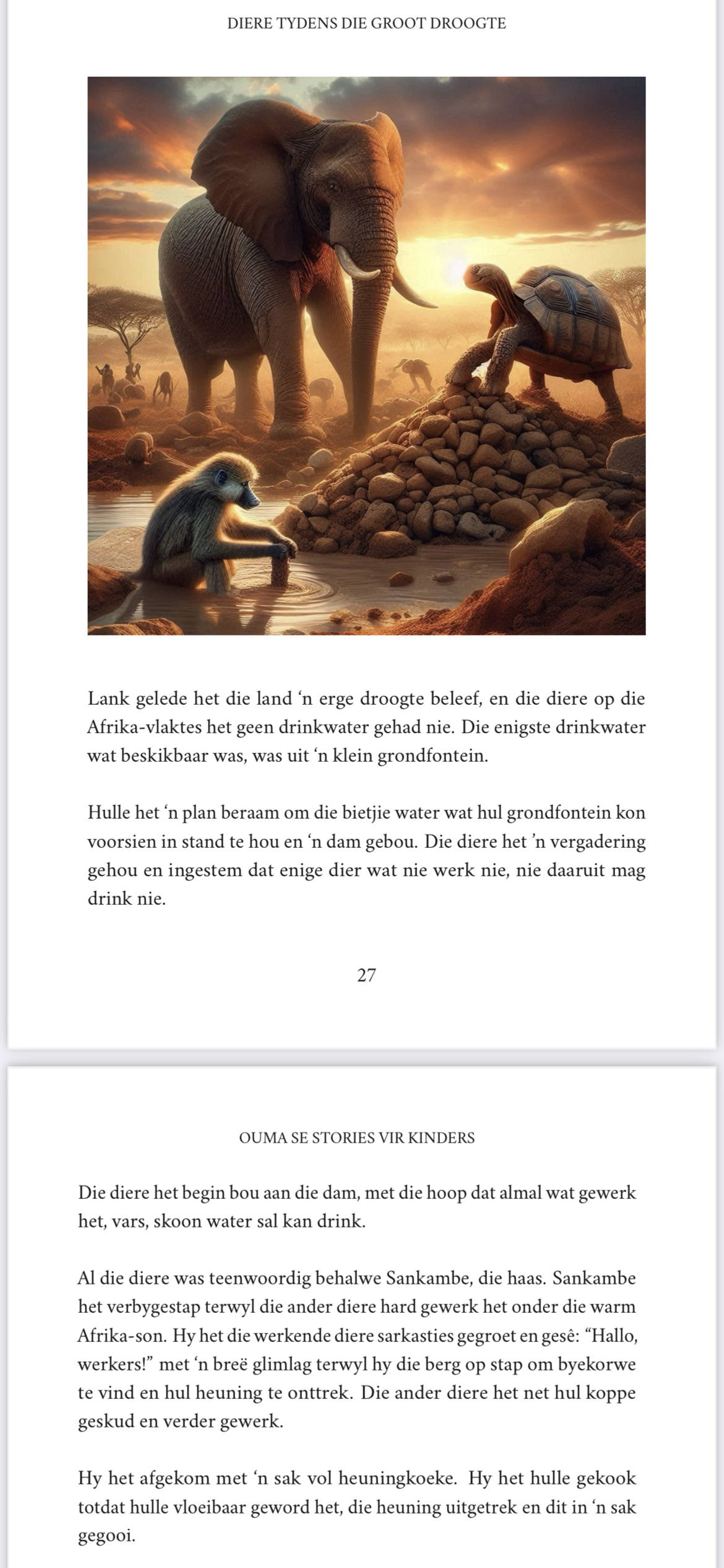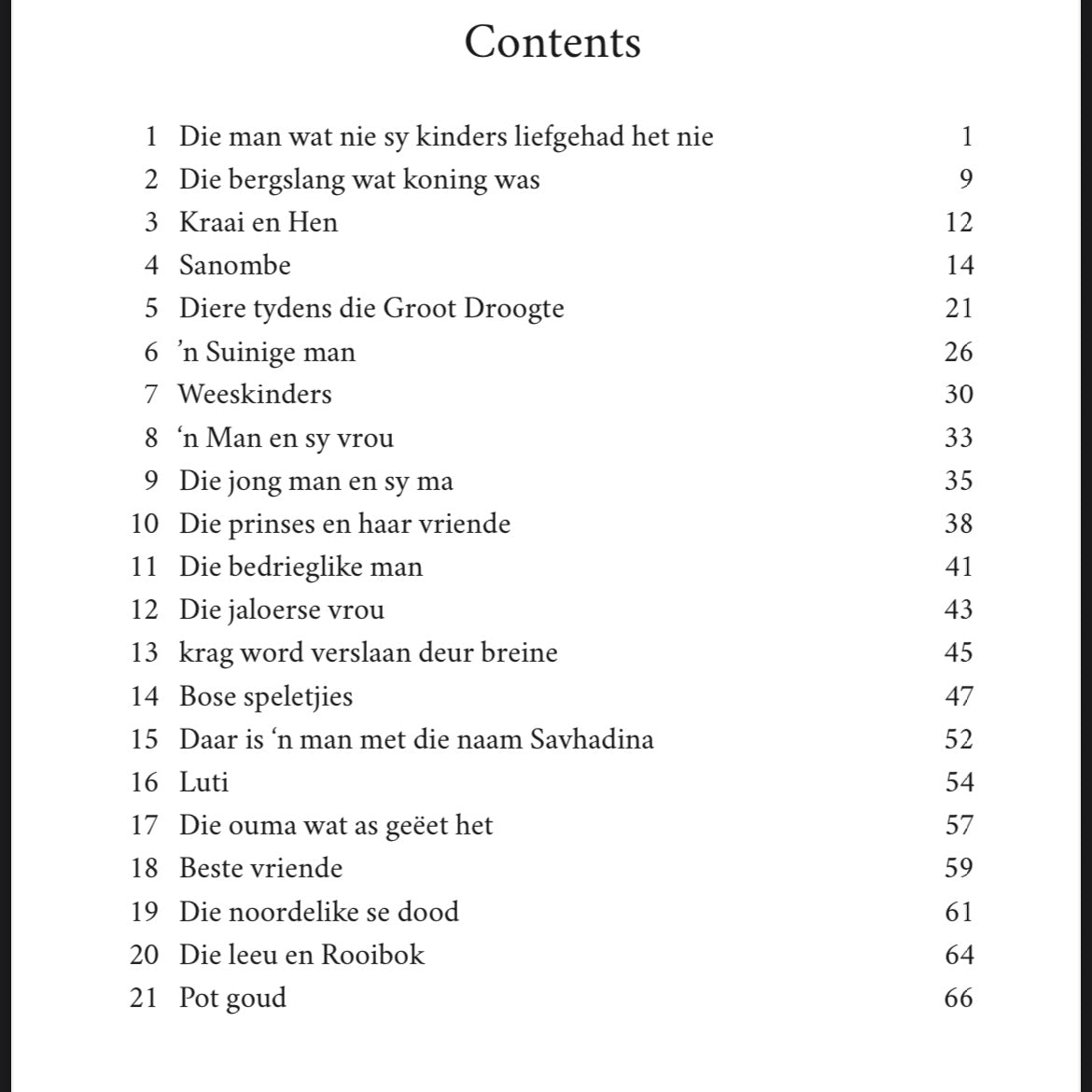 Hierdie boek bevat 21 verhale wat van een geslag na die volgende oorgedra is. En nou gee ek dit aan jou oor.