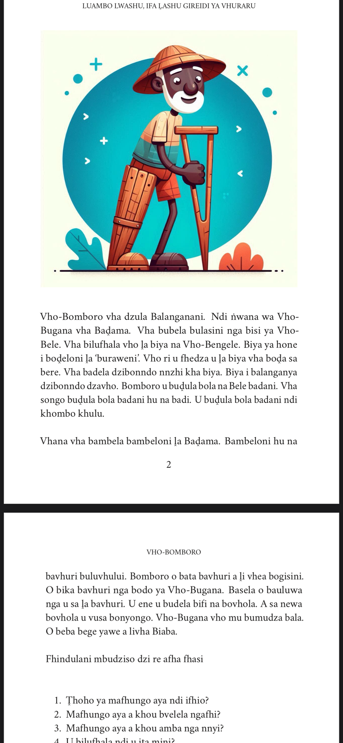 - Bugu iyi yo ṅwalwa nga thuso khulu i no bva kha Vho-Thomani Abraham Ramulifho vhe vha shuma sa mudededzi na ṱhohoyatshikolo tsha Tshiṱambamunwe Primary School tshi no wanala fhaḽa Tshimbupfe, Venḓa. Vho T. A Ramulifho vho shuma miṅwaha i paḓaho 30 vha tshi funza Tshivenḓa kha mirole gireidi 1, 2, 3, 4, 5 zwikoloni zwo fhambanaho. Ri a vha livhuwa, ri a vha hudza misi yoṱhe.