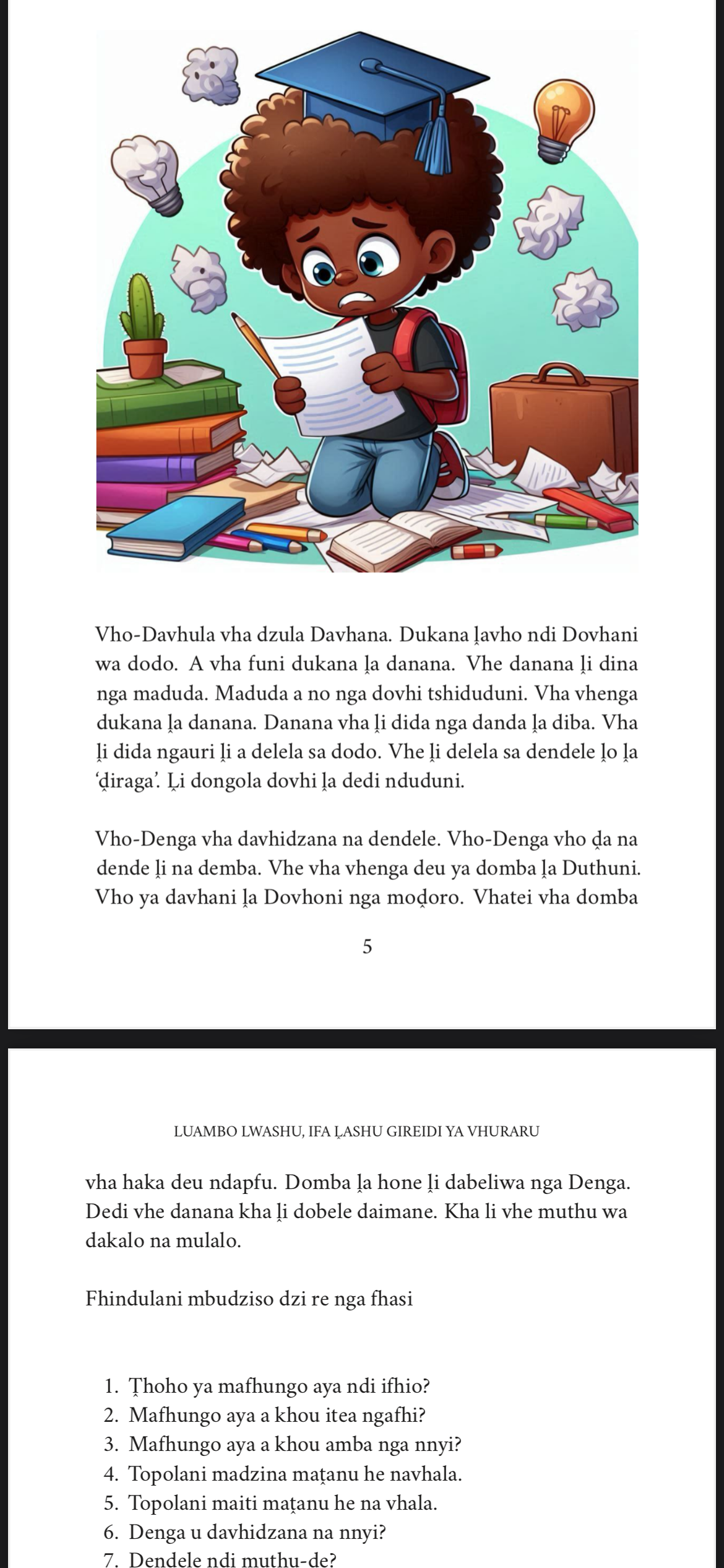 - Iyi ndi bugu ya u vhala ire na zwiṱori, zwidade, zwirendo na dzingano dzo fhambanaho dzi takadzaho vhagudi.