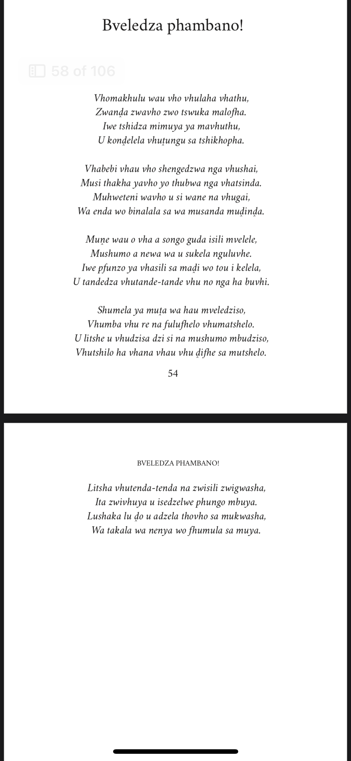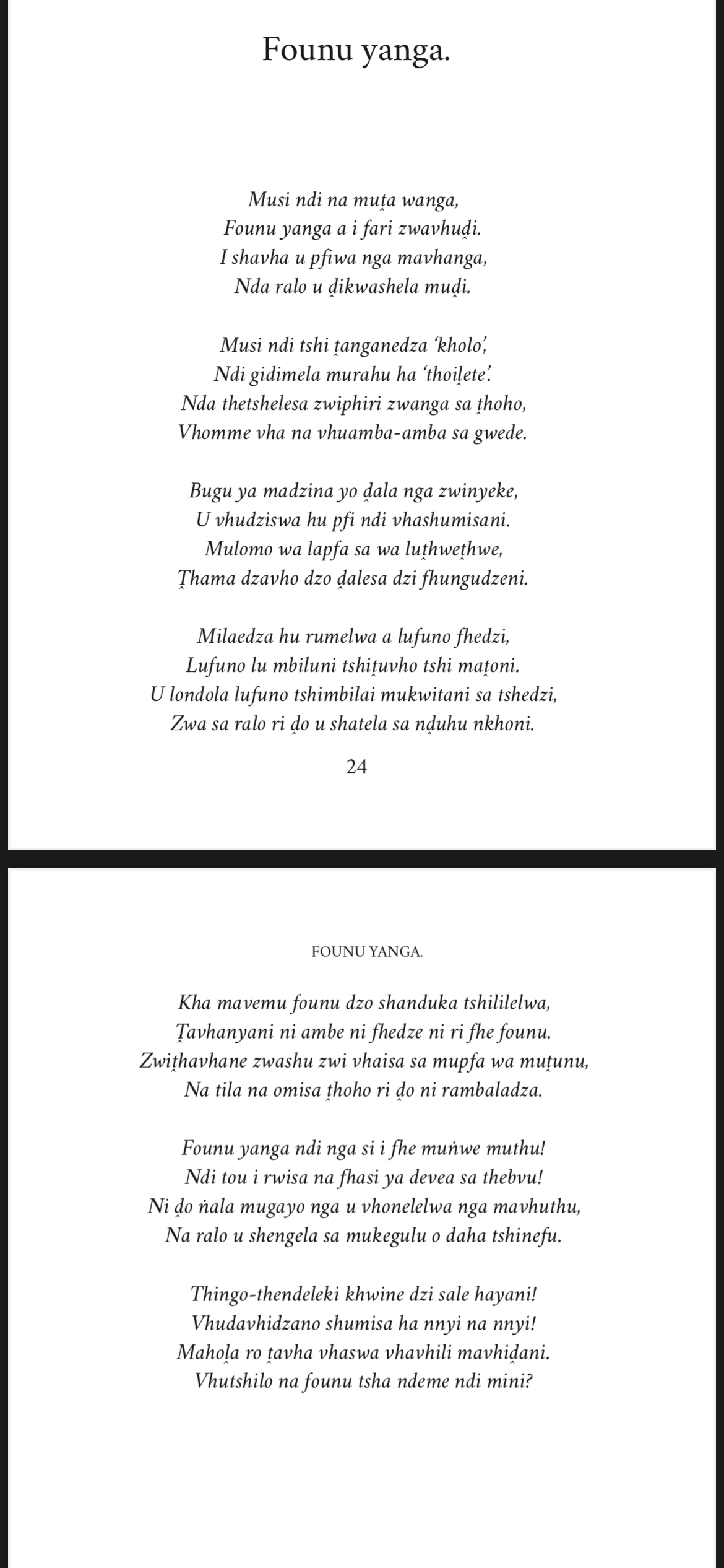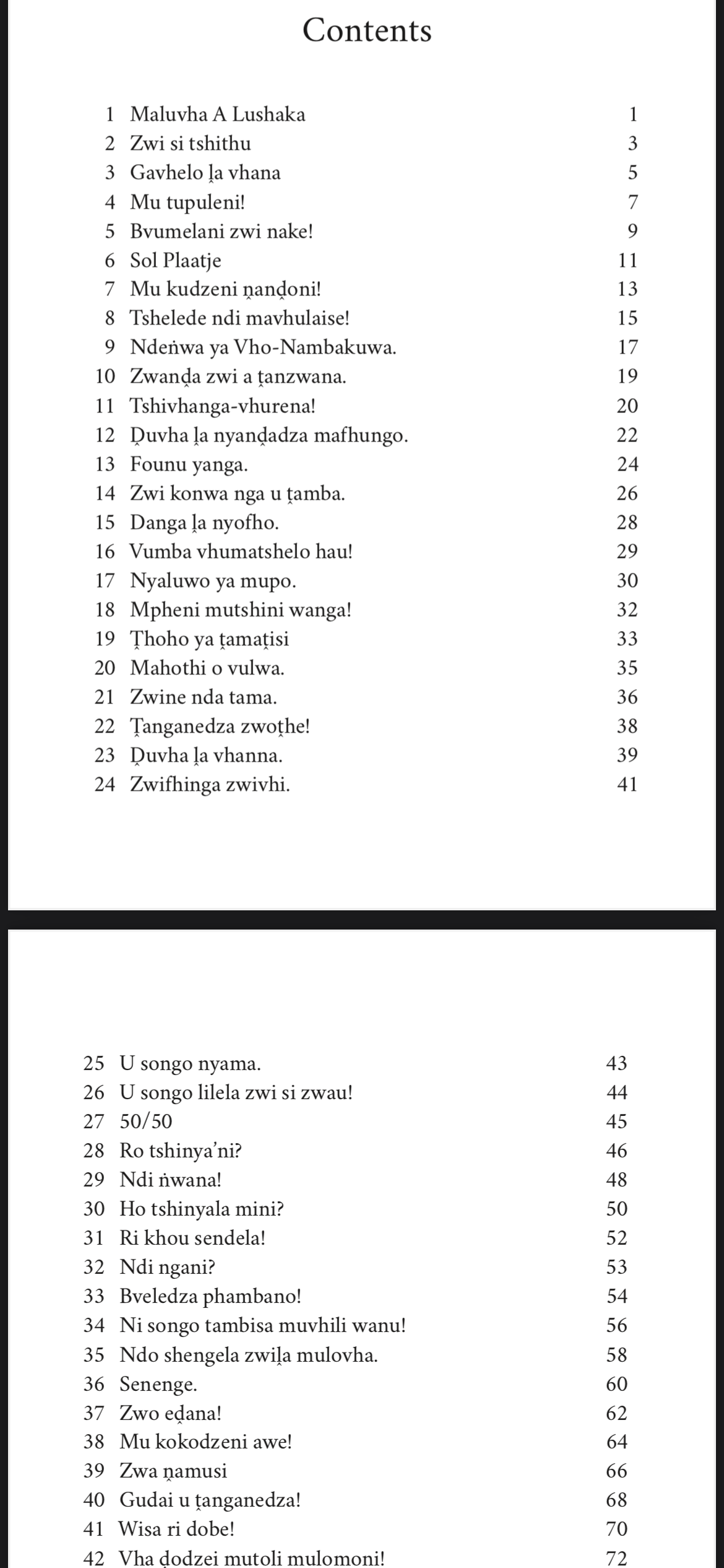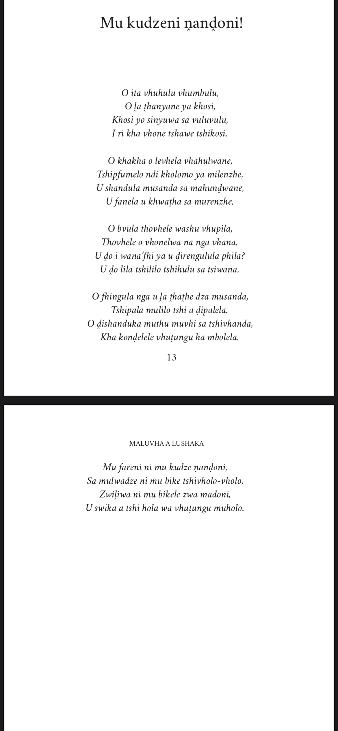 Hoyu mushumo wo thoma henengei Matongoni, tsikoni ya vhathu. Vhurendi vhu shumisa maipfi o teaho nyito iyi. Izwi zwa takadza ane a khou ralo u khoḓwa kana u rendwa, a pfa hu tshi tou vha makwanḓani.