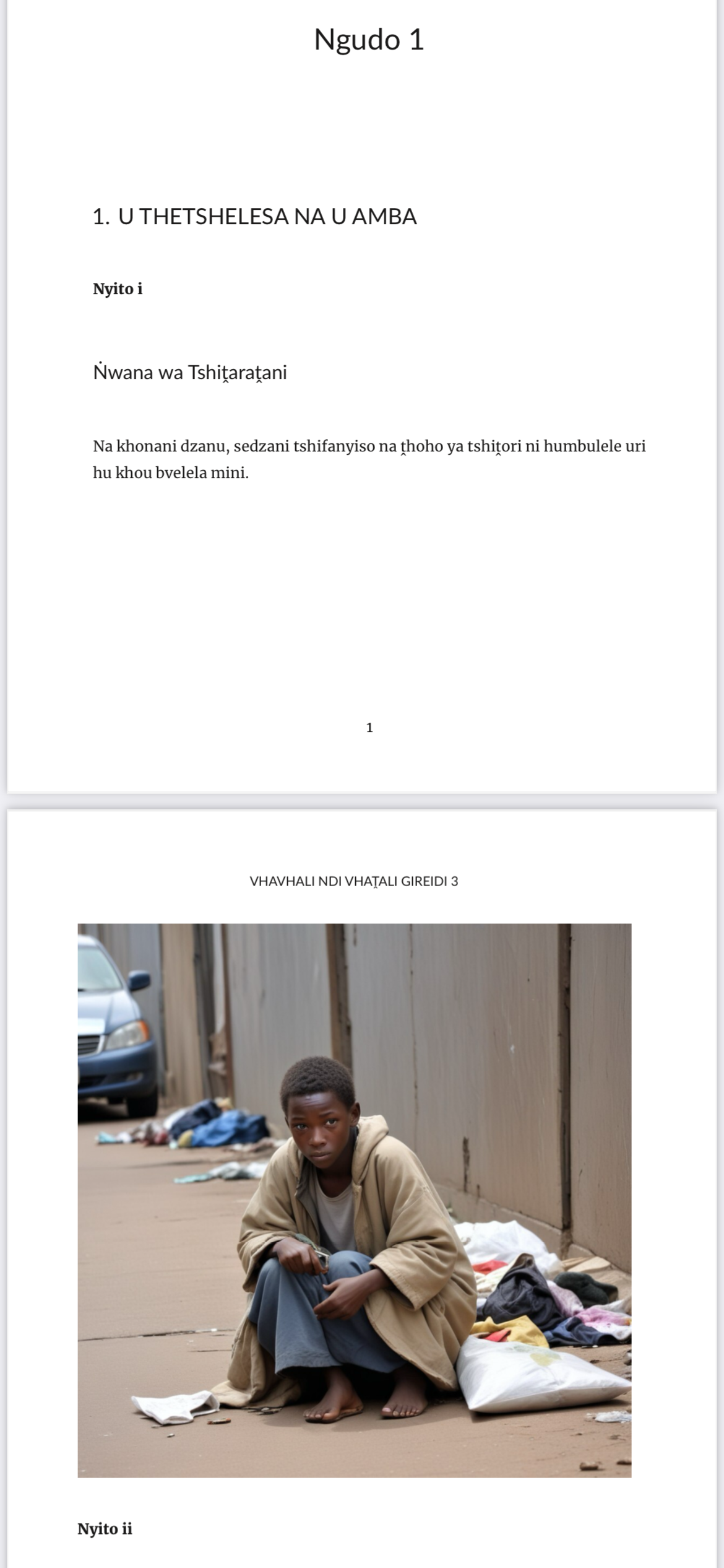 • Bugu iyi yo ṅwalwa nga thuso khulu i no bva kha Vho-Thomani Abraham Ramulifho vhe vha shuma sa mudededzi na ṱhohoyatshikolo tsha Tshiṱambamunwe Primary School tshi no wanala fhaḽa Tshimbupfe, Venḓa. Vho T. A Ramulifho vho shuma miṅwaha i paḓaho 30 vha tshi funza Tshivenḓa kha mirole gireidi 1, 2, 3, 4, 5 zwikoloni zwo fhambanaho. Ri a vha livhuwa, ri a vha hudza misi yoṱhe.