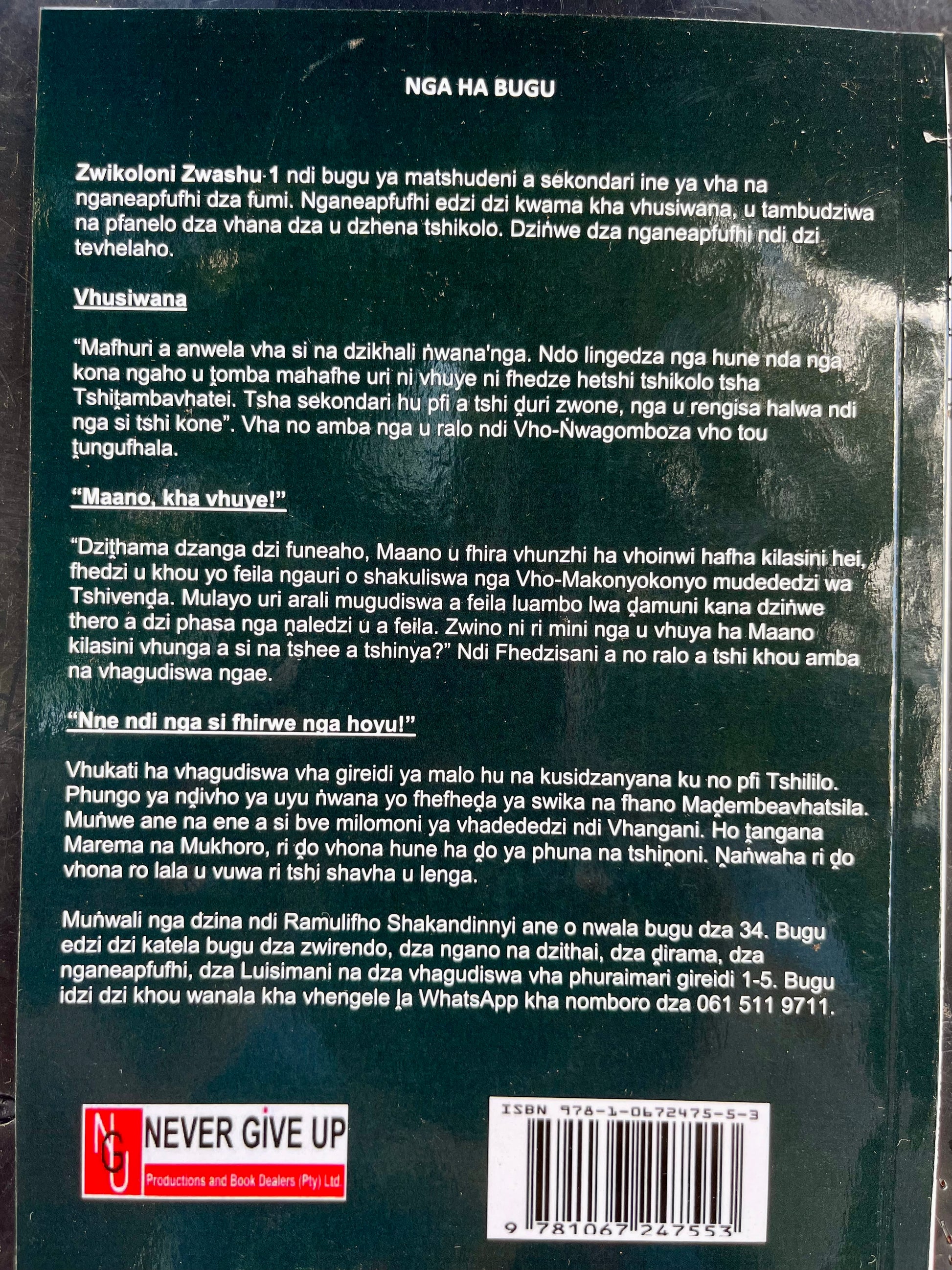 “Mafhuri a anwela vha si na dzikhali ṅwana'nga. Ndo lingedza nga hune nda nga kona ngaho u ṱomba mahafhe uri ni vhuye ni fhedze hetshi tshikolo tsha Tshiṱambavhatei. Tsha sekondari hu pfi a tshi ḓuri zwone, nga u rengisa halwa ndi nga si tshi kone.” Vha no amba nga u ralo ndi Vho-Ṅwagomboza vho tou ṱungufhala.